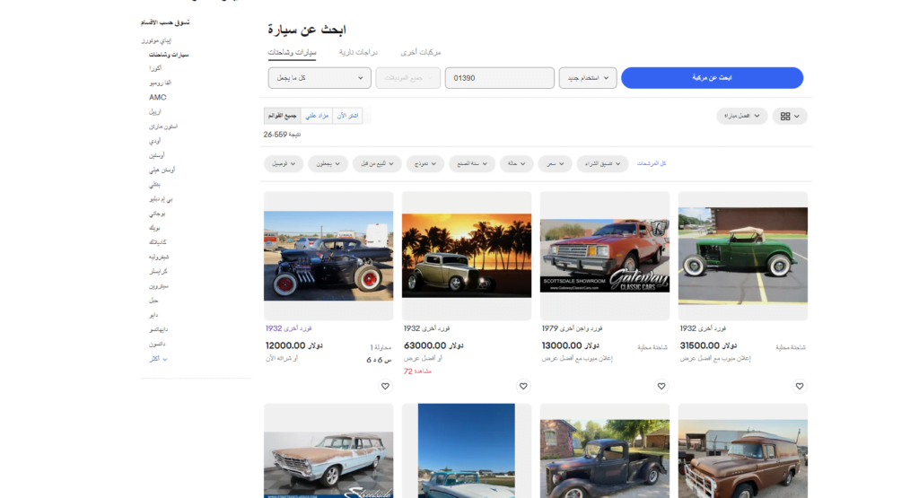 - ابحث عن السيارة التي تريدها: يمكنك البحث عن السيارة التي تريدها حسب الماركة، أو الطراز، أو السعر، أو أي مواصفات أخرى تهمك.
