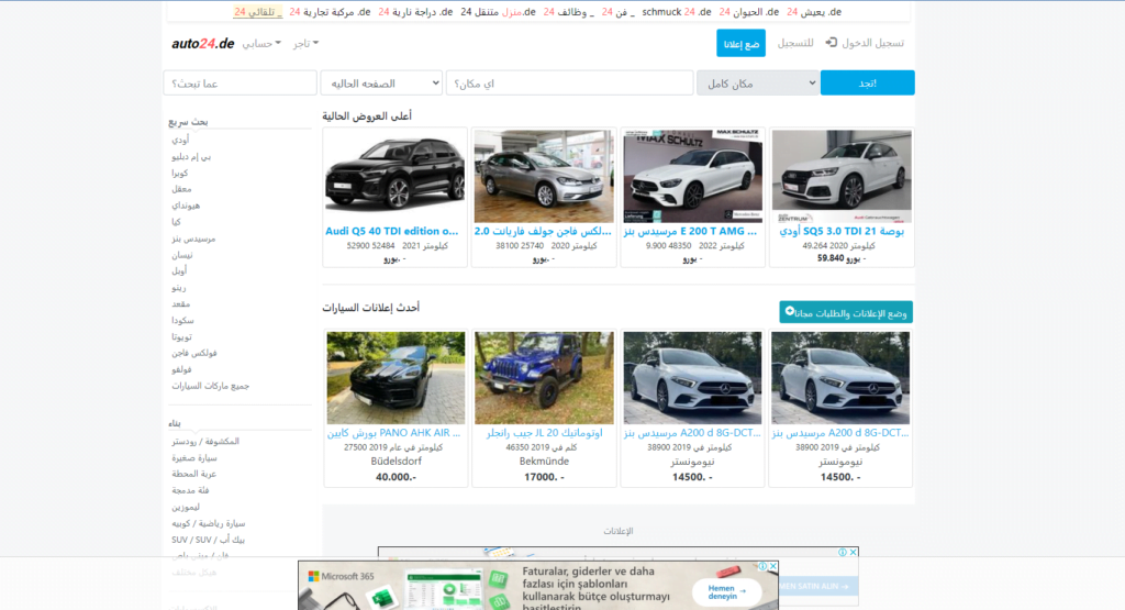 موقع auto 24 أشهر موقع لبيع وشراء السيارات حيث تجدون في الموقع أحدث أنواع السيارات الألمانية والكورية واليابانية