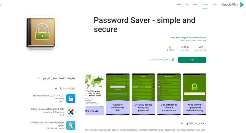 أفضل برنامج حفظ كلمات المرور للاندرويد هو تطبيق Password Saver – simple and secure