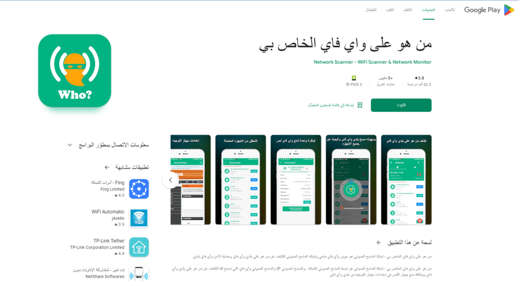 يعتبر تطبيق من هو على واي فاي الخاص بي أفضل تطبيق حماية الواي فاي ومن أكثر التطبيقات شعبية في متجر جوجل بلاي حيث وصلت عمليات تنزيل التطبيق إلى أكثر من 5 مليون عملية وتقييم التطبيق يعتبر جيدا جداً من قبل المستخدمين في متجر جوجل بلاي للاندرويد.