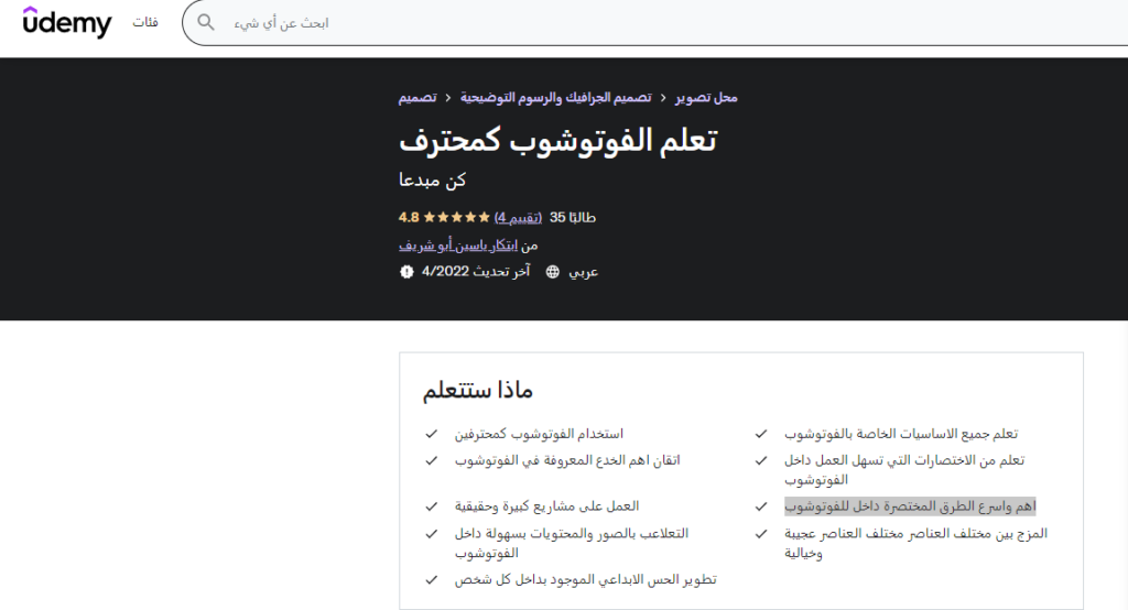 رابط موقع Udemy لتعليم الفوتوشوب هو:
