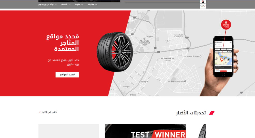 موقع بريجستون bridgestone أفضل موقع بيع إطارات للسيارات في الشرق الأوسط حيث يوفر الموقع كافة أنواع إطارات السيارات الصغيرة والشاحنات الآلات الزراعية والدراجات النارية و جميع مقاسات الإطارات.