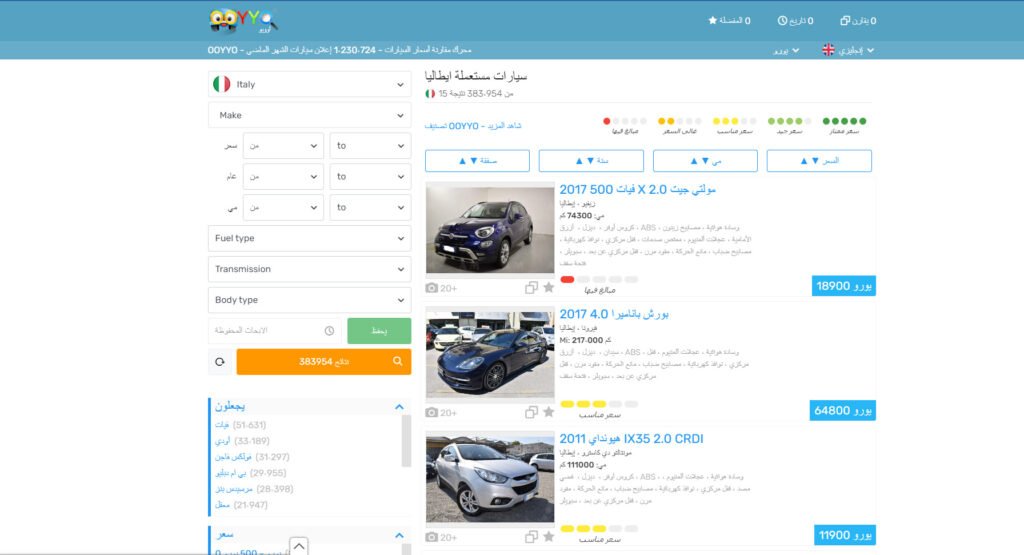 - موقع أويو ooyyo لمعرفة أسعار السيارات في إيطاليا