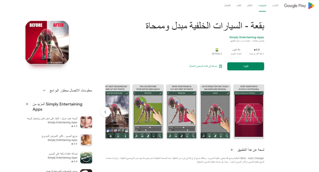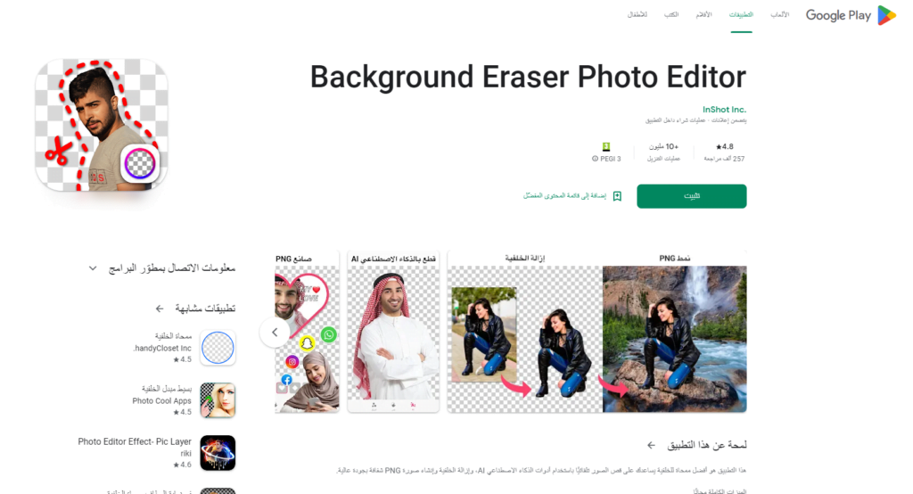 يعتبر تطبيقBackground Eraser & Changer أفضل تطبيق إزالة خلفية الصورة وأفضل أداة في محو الخلفية ومنظف للصورة بشكل سحرة وسهل ويتميز التطبيق بإزالة خلفية الصور بشكل تلقائي وإضافة الخلفية التي ترونها مناسبة لكم بالإضافة إلى تغيير اللون وتحرير الصور وضبط السطوع والتباين والكثير من المرشحات والآثار لتطبيق الصور بجودة عالية.