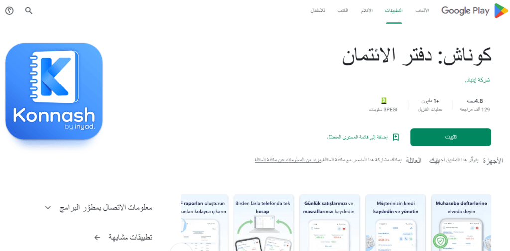 يمكنكم تحميل تطبيق كناش Konnash أفضل تطبيق يساعدكم في تتبع الديون والمعاملات المالية من متجر جوجل بلاي لهواتف الاندرويد من خلال: