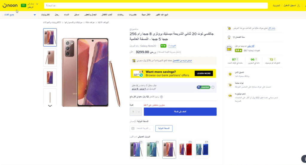 ما هو سعر هاتف سامسونج جالكسي نوت 20 في متجر نون السعودية؟