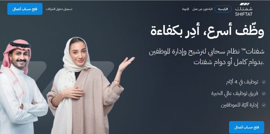 منصة شفتات هي نظام سحابي لترشيح وإدارة الموظفين بدوام كامل أو بالساعة، الوظائف متاحة لحديثي التخرج في كل التخصصات تعرضها شركات تعمل في كافة القطاعات وكل مدن المملكة.