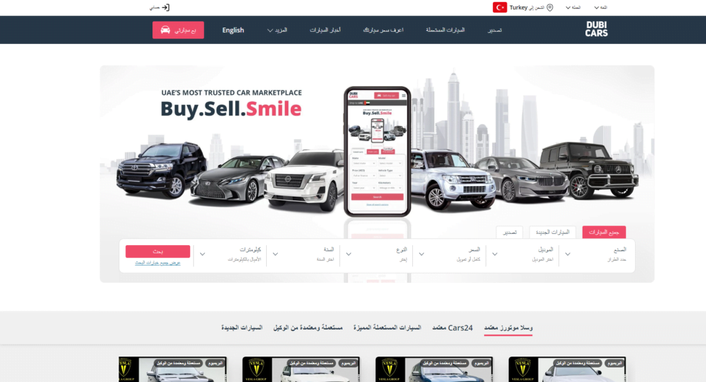 يعتبر موقع دبي كارز من أفضل مواقع بيع السيارات حيث يضم الموقع أحدث أنواع السيارات العالمية الجديدة والمستعملة ويمكنكم اختيار أفضل السيارات من خلال تحديد طراز صنع السيارة والموديل كما تستطيعون تحديد أقل سعر وأعلى سعر وتحديد سنة الصنع والمسافة التي مشتها السيارة كما يتيح لكم الموقع إمكانية الشحن لأي مكان تريدونه بكل سهولة.