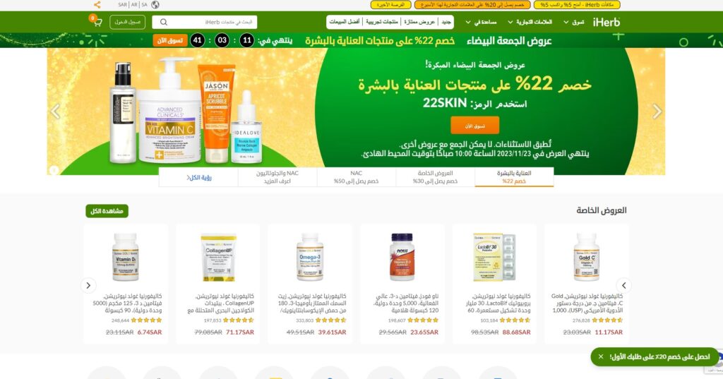 2. يقدم موقع iHerb أسعار تنافسية على جميع منتجاته، كما يقدم عروض وخصومات بشكل مستمر، مما يساعدك على توفير المال عند الشراء.