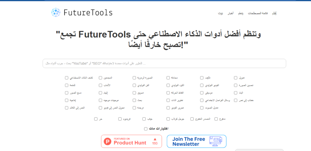ومن أهم مواقع الذكاء الاصطناعي والأدوات الموجودة في موقع FutureTools نذكر لكم: