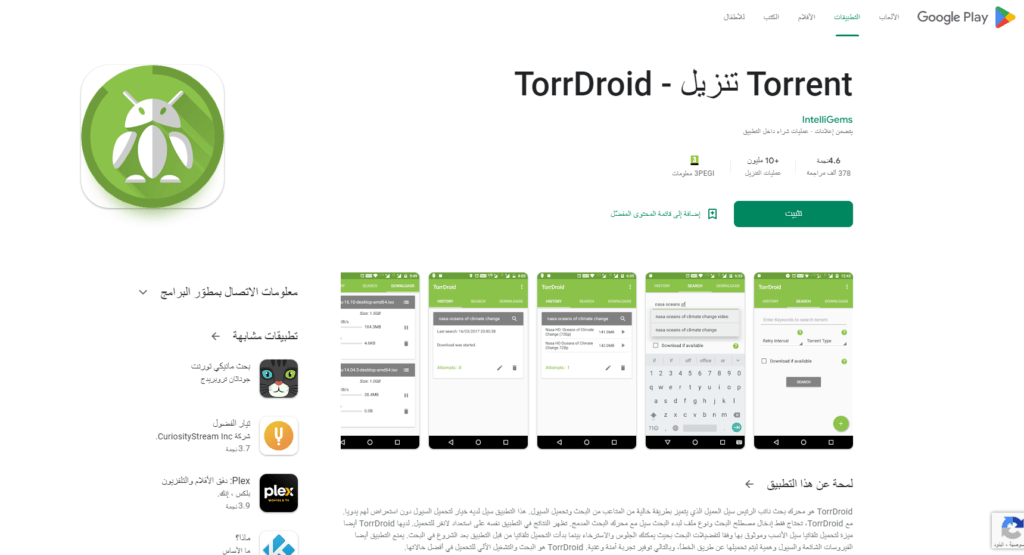 يعتبر تطبيق TorrDroid أشهر تطبيق تحميل المسلسلات والأفلام مجانا وهو أفضل محرك بحث ويتميز بطريقة خالية من المتاعب للبحث عن الملفات والبرامج وتنزيلها مجانا وهو من التطبيقات الأكثر شعبية في متجر جوجل بلاي حيث وصلت عمليات تنزيل التطبيق إلى أكثر من 10 مليون وتقييمه جيد جداً لذلك يُعد التطبيق الأنسب لتحميل ما ترغبون به مجانا وبكل سهولة.