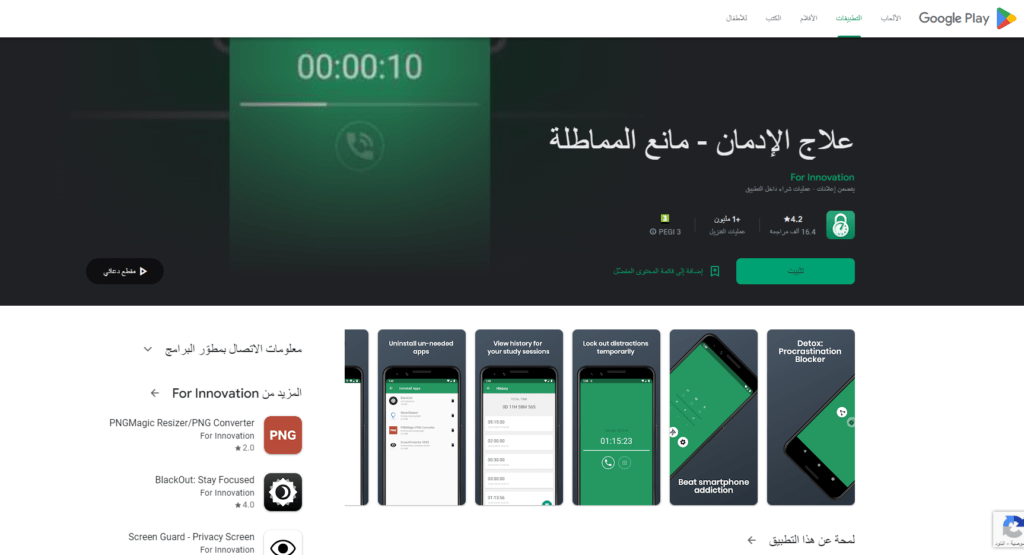 أشهر برنامج قفل التطبيقات لمدة معينة للاندرويد للمذاكرة هو يرنامج علاج الإدمان – مانع المماطلة.