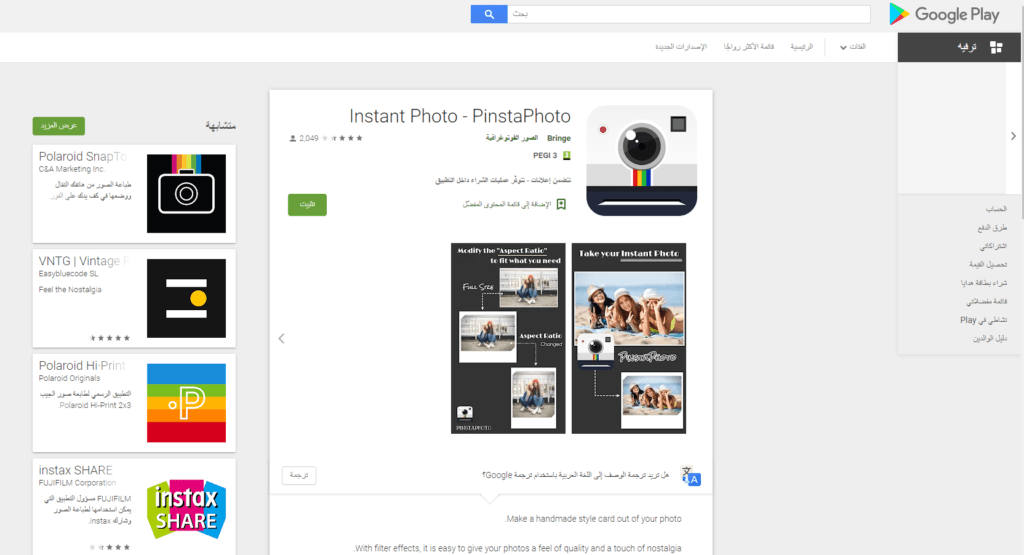 - تطبيق إنستانت فوتو Instant Photo Pro.