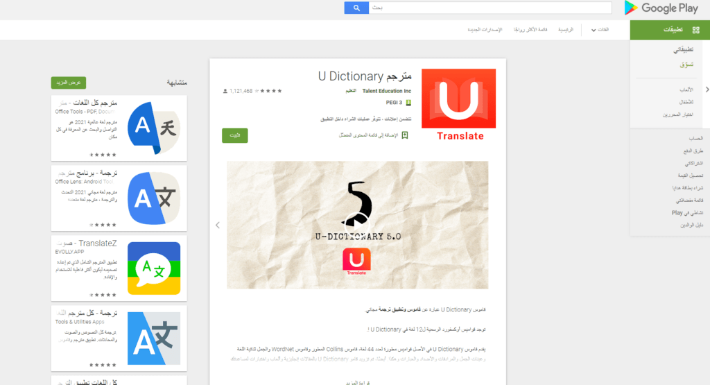 يعتبر تطبيق U-dictionary Pro من أفضــل تطبيقات للاندرويد 2024 التي انتشرت بشكل كبير في الفترة الأخيرة وهي من التطبيقات المتخصصة في ترجمة الكلمات والنصوص بشكل مباشر.