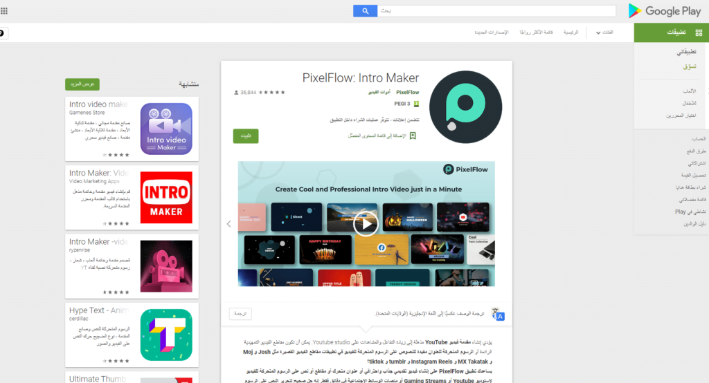 تطبيق PixelFlow Pro من أشهر وأفضل التطبيقات للاندرويد 2024 حيث يقدم لك انشاء انترو اكثر احترافي لقناة اليوتيوب اذا كنت من مبدعي المحتوى على هذه المنصة، او يمكنك استعماله كمقدمة لشرح تطبيق معين.