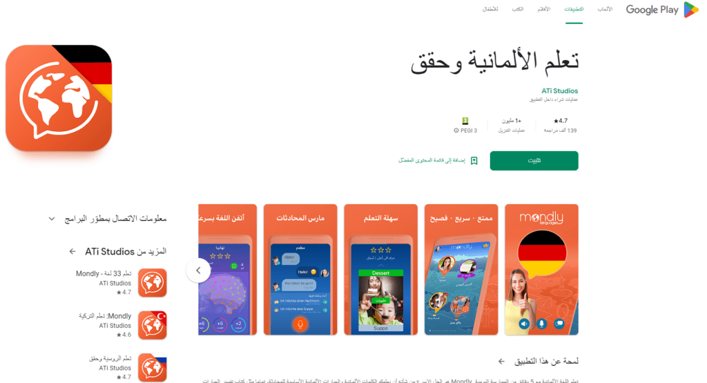 رابط تحميل تطبيق Mondly لإتقان اللغة الألمانية لهواتف الاندرويد