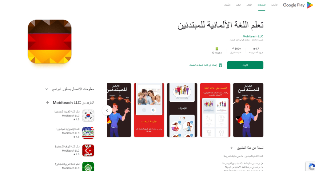 برنامج تعليم اللغة الألمانية للمبتدئين هو تطبيق تعلم اللغة الألمانية للمبتدئين ويمكنكم تحميله من خلال الرابط :