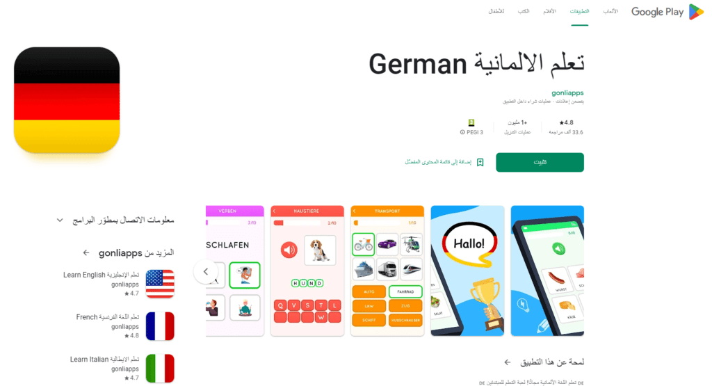 أفضل ابلكيشن لتعلم اللغة الألمانية هو تطبيق تعلم الالمانية German