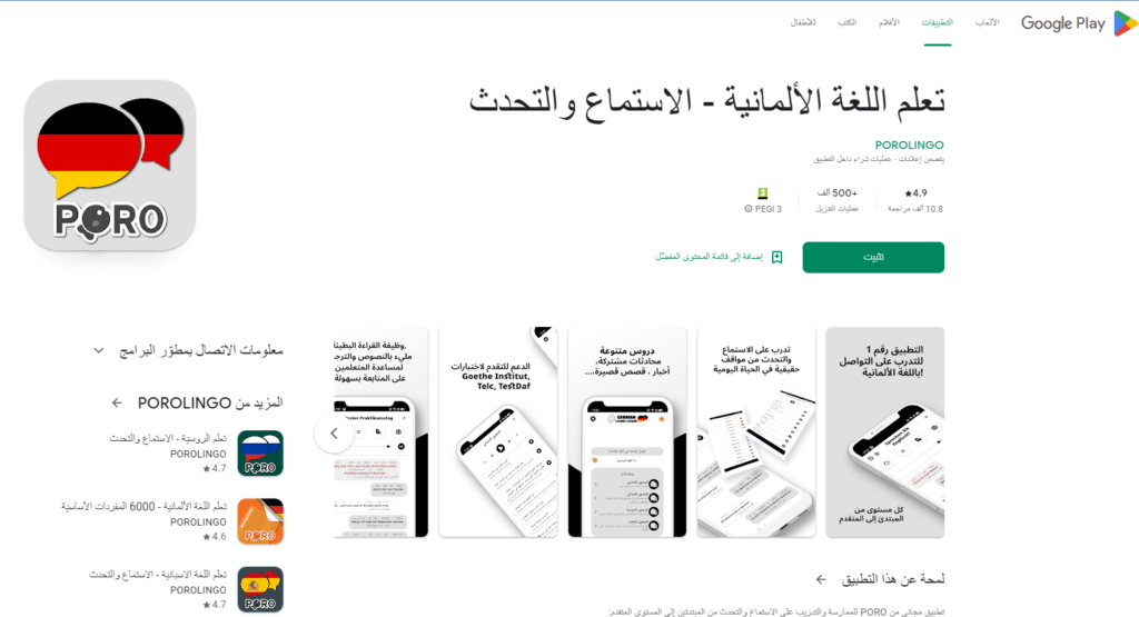 أشهر تطبيق تعليم اللغة الألمانية تطبيق PORO