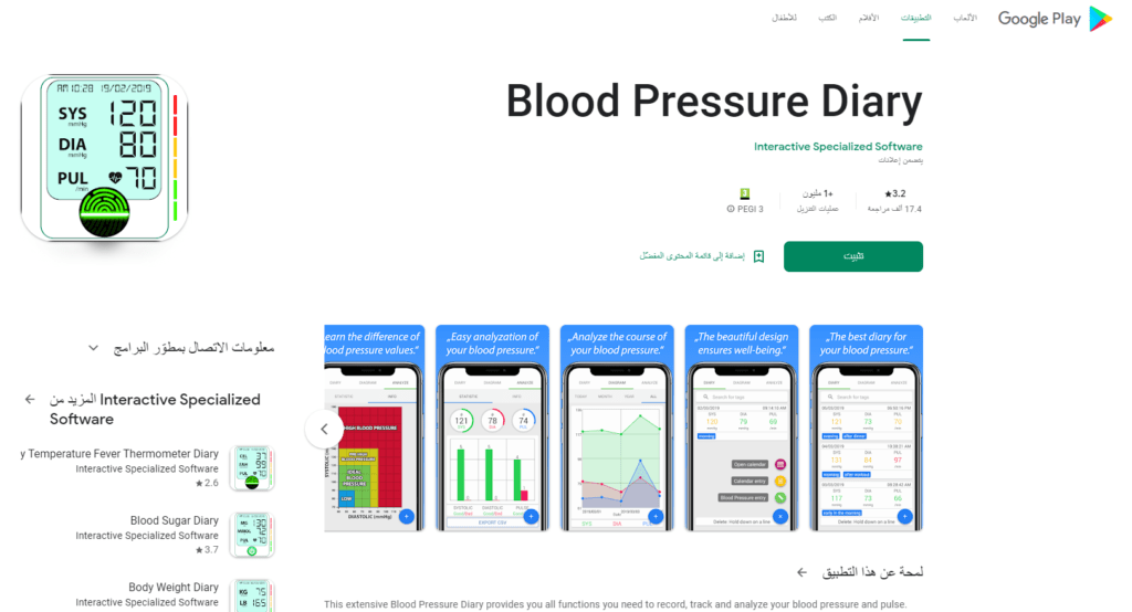 تطبيق بلود بريسور تطبيق Blood Pressure Diary لهواتف الاندرويد