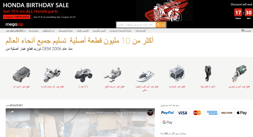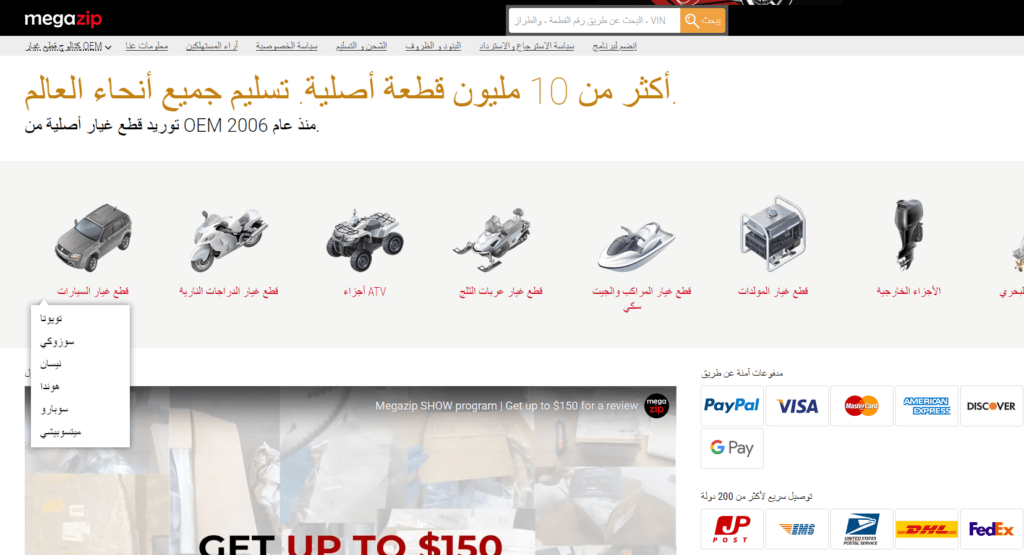 رابط موقع ميغا زيب أشهر موقع طلب قطع غيار سيارات