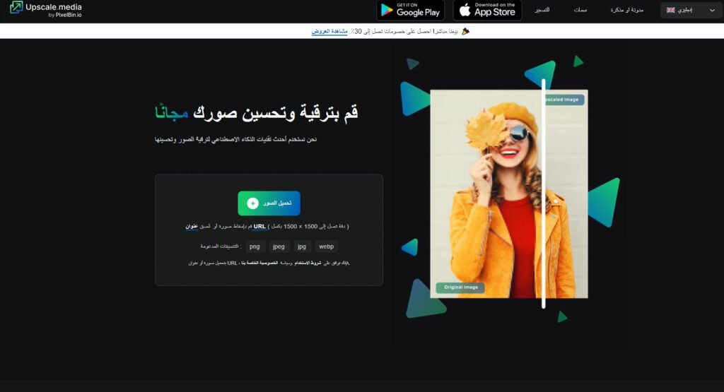 تستطيعون رفع دقة الصورة اون لاين من خلال موقع upscale.media