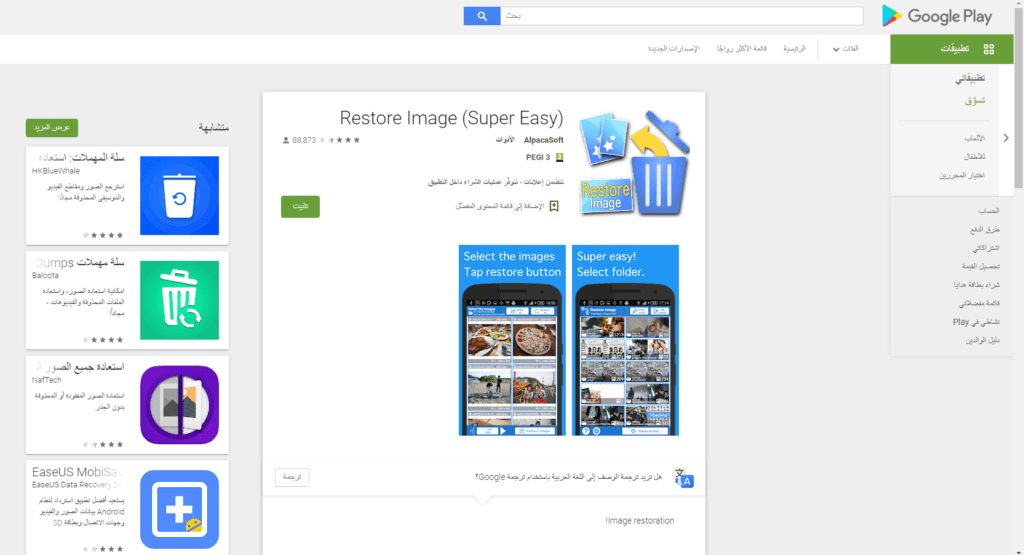 أفضل تطبيق لإسترجاع الصور للأندرويد تطبيق AlpacaSoft Restore Image