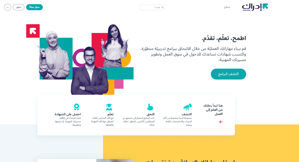 رابط موقع إدراك أفضل مواقع التعلم الذاتي العربية