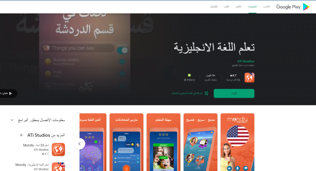رابط تحميل تطبيق تعلم اللغة الانجليزية بالعربي لهواتف الاندرويد