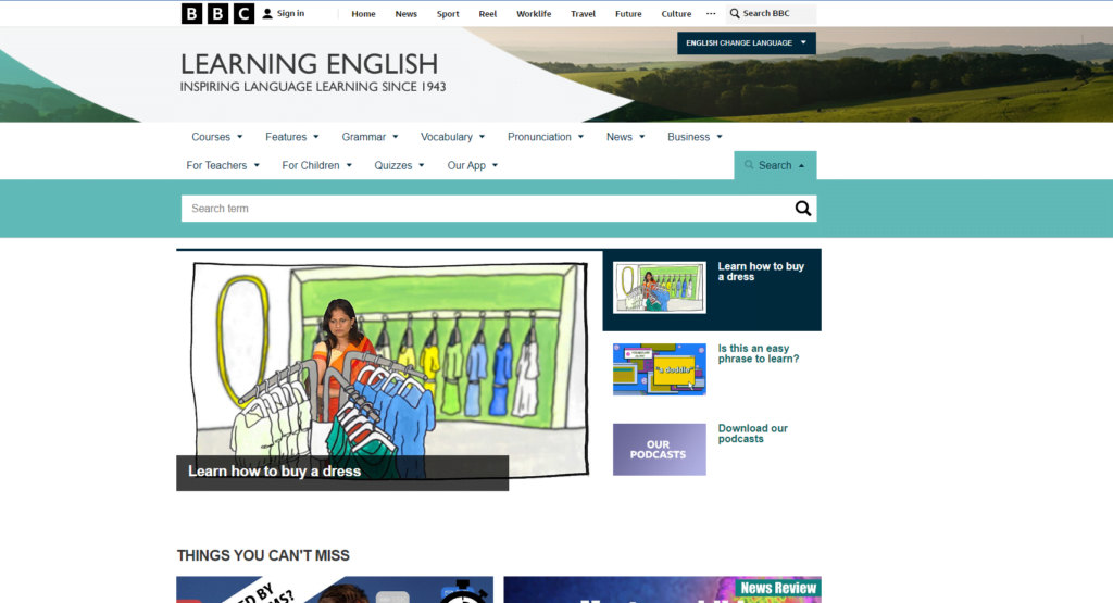 كما يتميز الموقع بتعليم الإنجليزية من خلال الأخبار وتعليم مفردات الحياة اليومية وللأعمال واختبارات لتقييم التقدم في التعلم وتحديد المستوى.