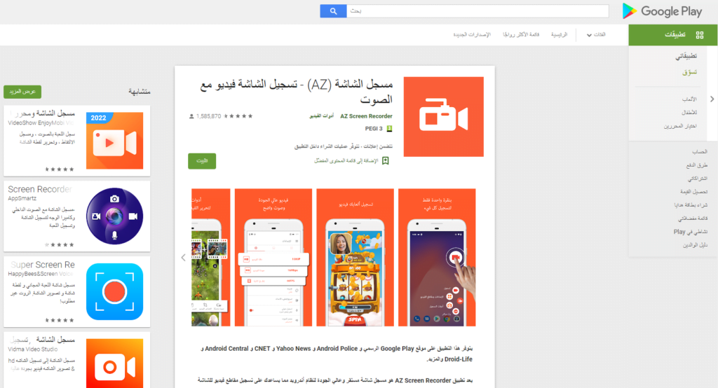 ما هو أشهر تطبيقات تصوير الشاشة فيديو للأندرويد؟
