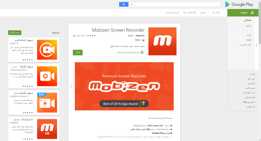 تحميل تطبيق Mobizen Screen Recorde تسجيل شاشة الهاتف لهواتف الاندرويد