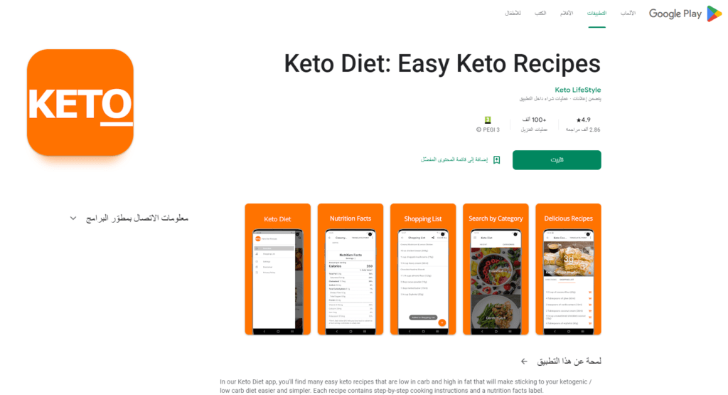 تطبيق كيتو دايت Keto Diet: Easy Keto Recipes لتحديد نظام غذائي الاندرويد