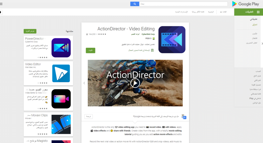 تطبيق أكشن ديريكتور ActionDirector Video Editor أفضل برنامج تحرير فيديو مجاني ومن خلاله ستكون قادر على تسجيل الفيديو الخاص بك ومن ثم تبدأ عملية التحرير والتعديل عليه وإضافة التأثيرات التي ترغب بها ثم تصدير الفيديو ومشاركته مباشرة مع أصدقائك على مواقع التواصل الاجتماعي.