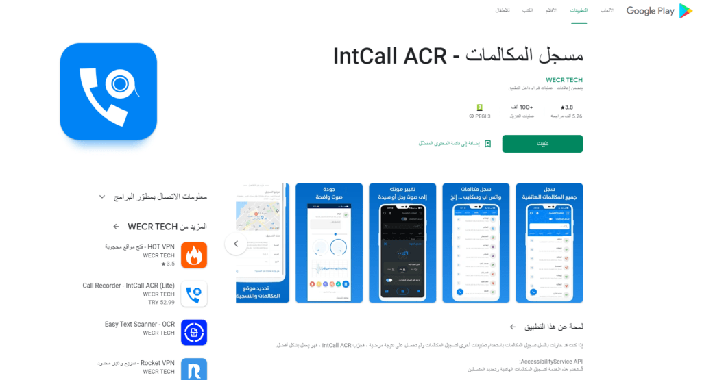 تطبيق إنتكول IntCall ACR‏ من أفضل تطبيقات تغيير الصوت أثناء المكالمات