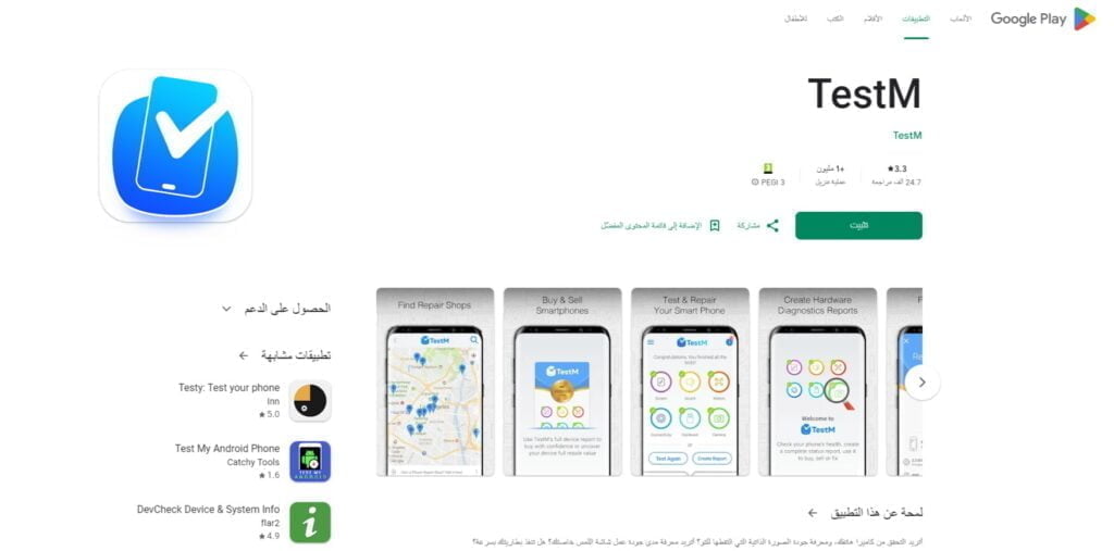 رابط تحميل تطبيق TestM من أفضل تطبيقات فحص حالة الهاتف للاندرويد