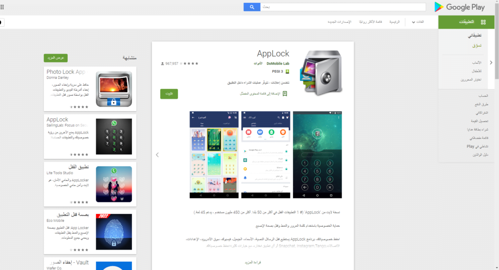 - افتح متجر Google Play وابحث عن “قفل التطبيق”.