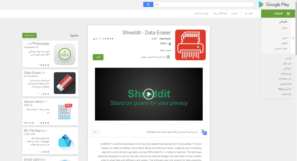 تطبيق شير دديت Shreddit – Data Eraser من أفضل تطبيقات حذف بيانات هاتف أندرويد بشكل آمن ويجعل البيانات الخاصة بك غير قابلة للاسترداد.