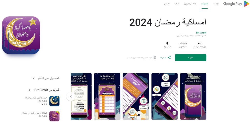 تضم متاجر الهواتف الذكية العديد من البرامج والتطبيقات الإسلامية ومنها المتخصصة بشهر رمضان وفيما يلي نتعرف معكم على أفضل تطبيق يقدم لكم امساكية رمضان 2024 وهو: