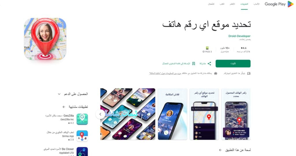 - افتح متجر Google Play وابحث عن “تطبيق تحديد موقع اي رقم هاتف”.