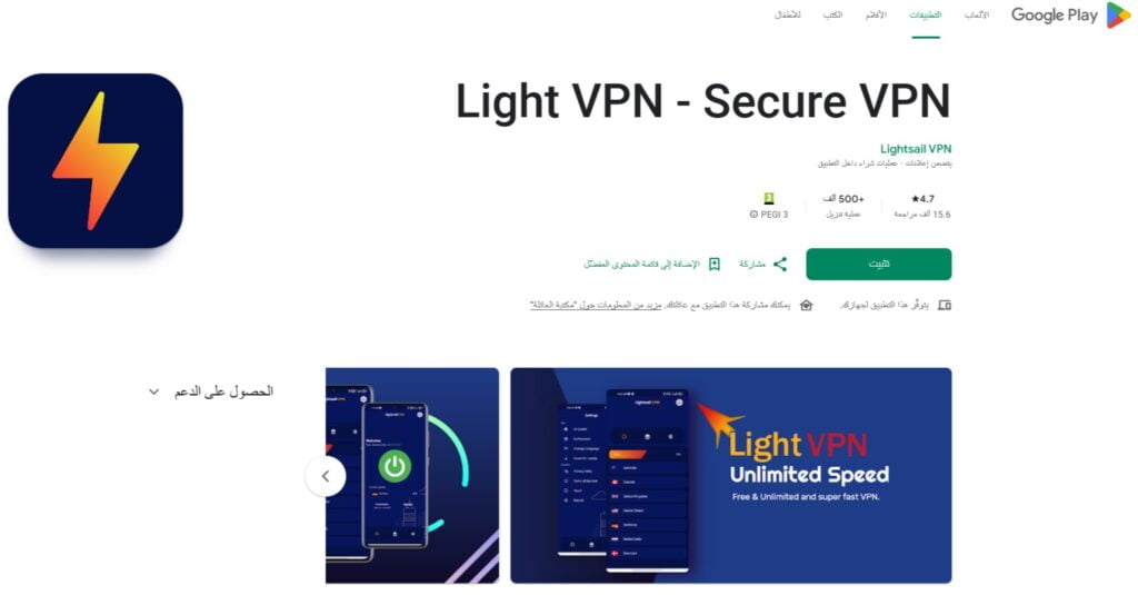 لتنزيل تطبيق تسريع الانترنت تطبيق لايت سيل Lightsail VPN لهواتف الاندرويد وذلك من متجر جوجل بلاي مجانا وبكل سهولة من خلال: