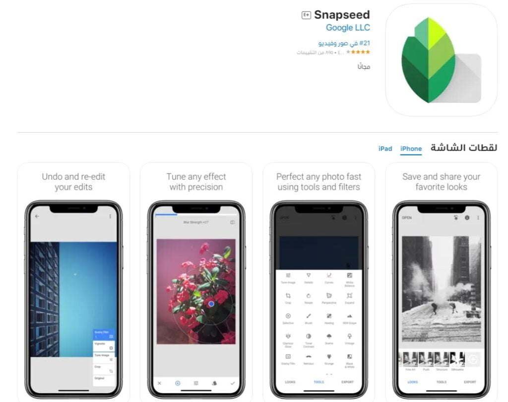 تطبيق سناب سيد Snapseed أفضل محرر صور احترافي، متاح لأجهزة Android و iOS مجانا للاستخدام والتنزيل من خلال اتباع الروابط أدناه: