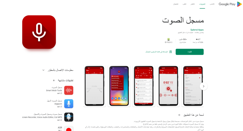 تطبيق مسجل الصوت متاح لأجهزة الاندرويد ويمكنك تنزيل التطبيق من متجر جوجل بلاي مجانا وبكل سهولة من خلال الرابط أدناه:
