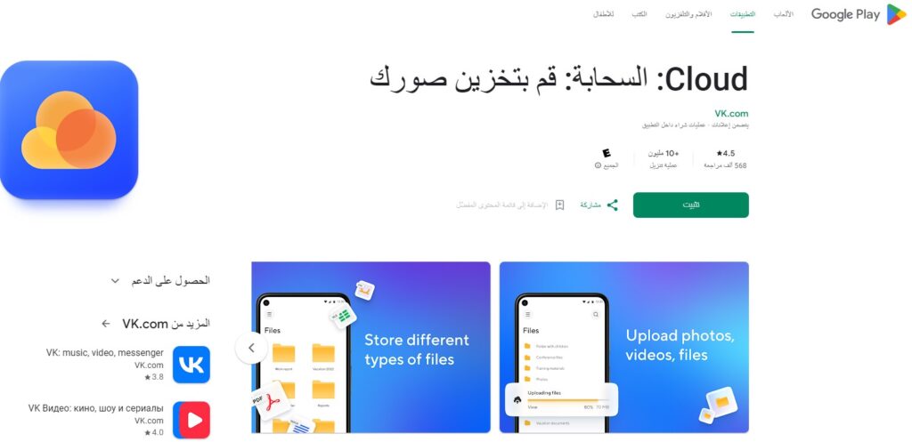 تطبيق Cloud أفضل تطبيق لزيادة مساحة الجوال، وهو متاح لأجهزة Android مجانا للاستخدام والتنزيل من متجر Google Play عبر الرابط أدناه: