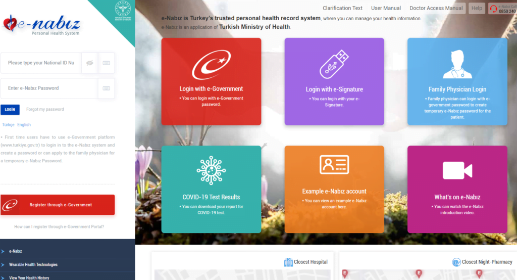 تقدم وزارة الصحة في تركيا للمواطنين والمتخصصين في الرعاية الصحية خدمة مجانية تساعدك للوصول إلى معلوماتك الصحية من تطبيق e-Nabız اي نبض التي تم جمعها من قبل مؤسسات الرعاية الصحية عبر الإنترنت والأجهزة المحمولة.