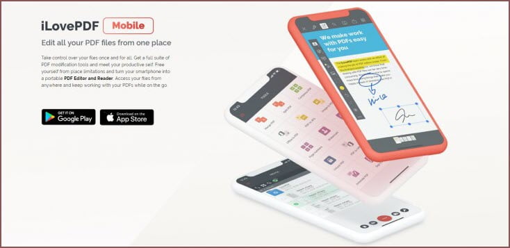 تطبيق iLovePDF أفضل تطبيق لتعديل وتحرير مستندات PDF متوفر لأجهزة Android و iOS ويمكن تنزيله مجانا وبكل مرونة من خلال الروابط أدناه: