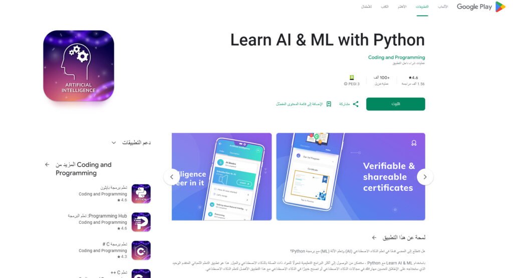 تطبيق Learn AI يساعدكم في تعلم الذكاء الاصطناعي (AI) وتعلم الآلة (ML) مع برمجة Python