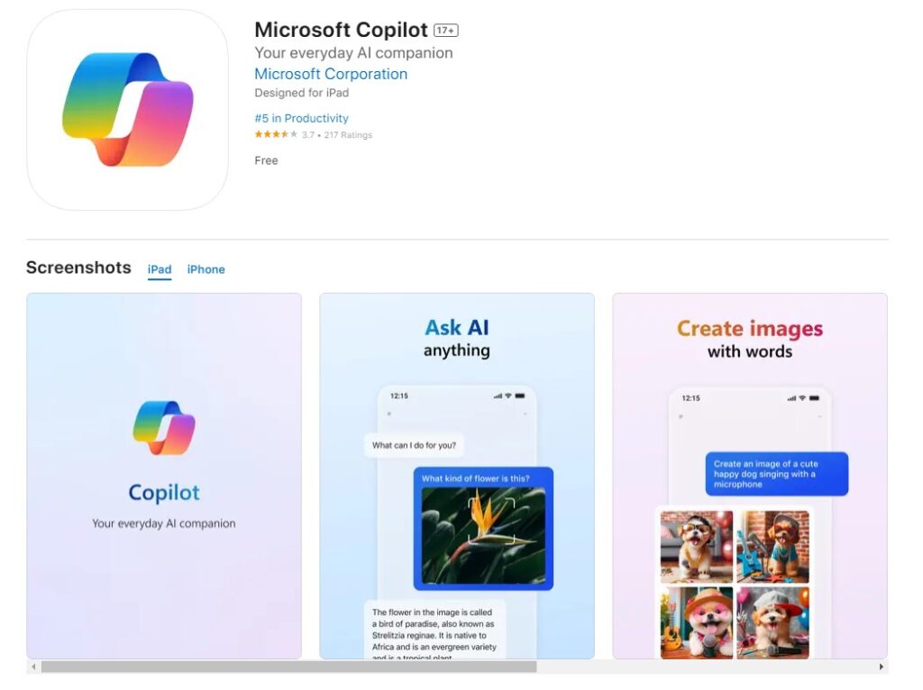وتوفر تقنيات الذكاء الاصطناعي المتقدمة في تطبيق Microsoft Copilot، استجابات سريعة ومعقدة ودقيقة، بالإضافة إلى القدرة على إنشاء صور مذهلة من أوصاف نصية بسيطة مجاناً.