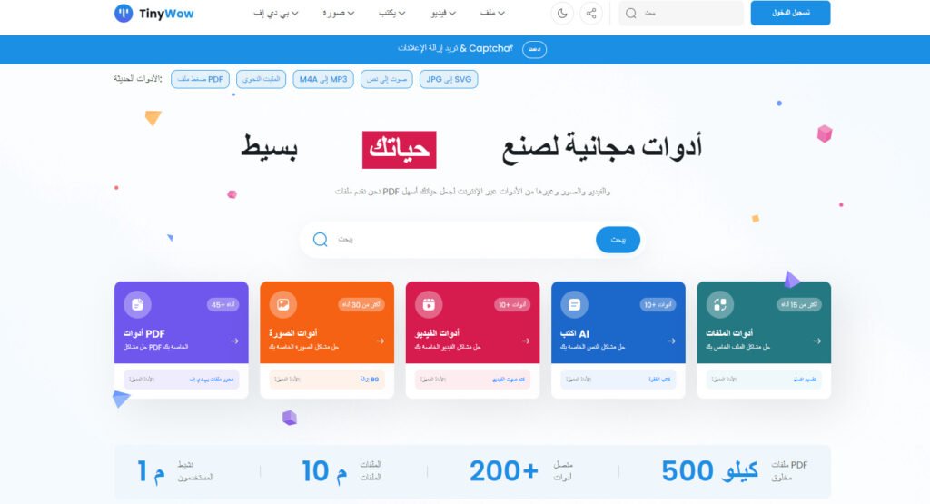 ويوفر لكم موقع تيني واو Tinywow أدوات مجانية في حياتكم العملية والمهنية وفي التعليم وفي شتى مجالات الحياة لصنع الفيديو والصور وملفات بي دي اف pdf وغيرها من الأدوات عبر الإنترنت لجعل حياتكم أسهل وبكل بساطة.