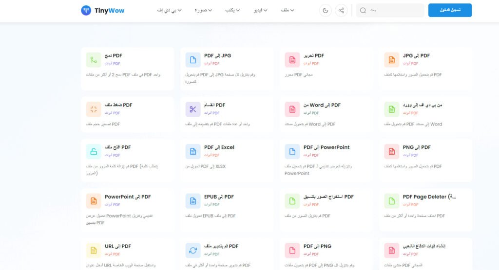 موقع تيني واو Tinywow لتعديل ملف PDF مجانا